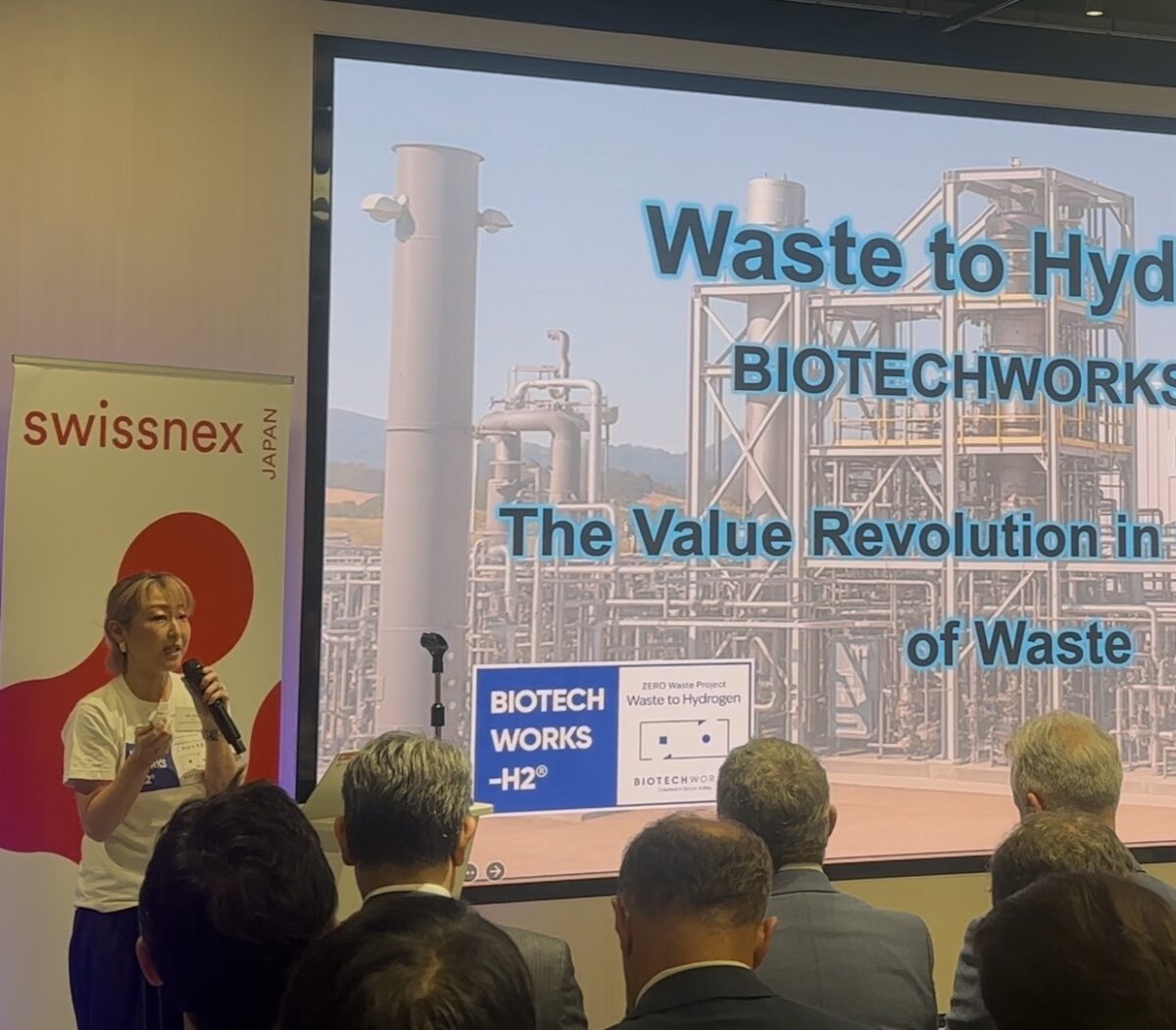 During the pitch, BIOTECHWORKS-H2 introduced its innovative scheme for hydrogen production from waste without incineration, a Japan-originated technology that enables the coexistence of a circular economy and decarbonization.In her presentation, Ms. Miki Niyatani, CMO of BIOTECHWORKS-H2, shared the company’s vision of a “Zero Waste Hydrogen Society” and discussed the potential for collaboration with partners in Switzerland and across Europe.